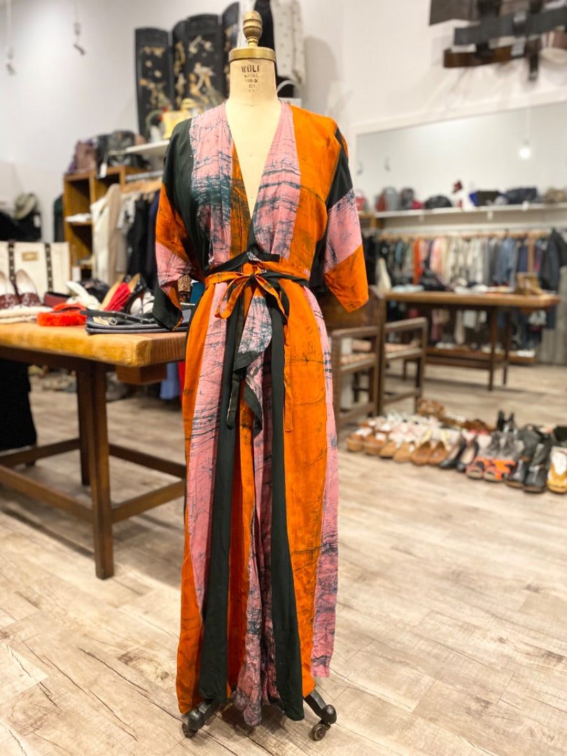 Al's Attire Orange/Multicolor Hand Woven Jacket, Small