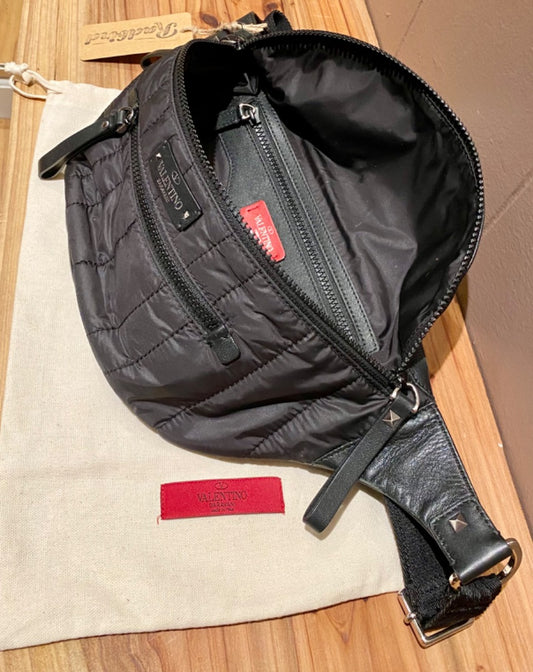 Valentino Black Puff Leather Fanny Pack, M/L