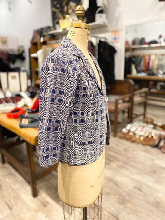 Mary McFadden Navy/Cream Print Jacket, XL