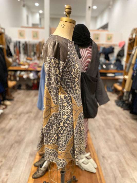 Gary Graham Grey/Orange Wool with Leather Dress, 4