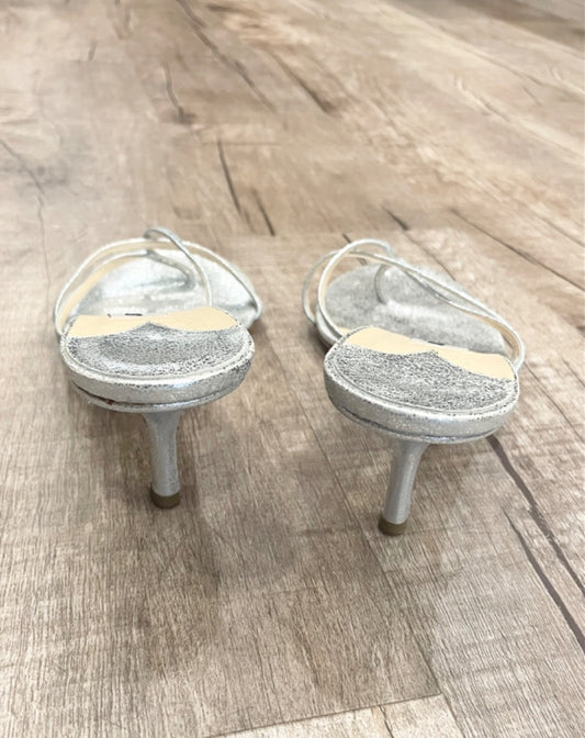 Jimmy Choo Silver Metallic Kitten Heel, 37.5