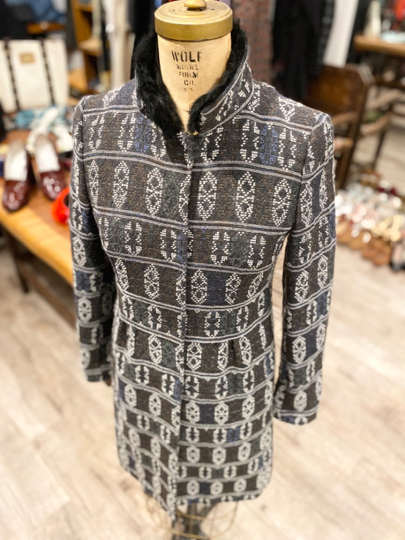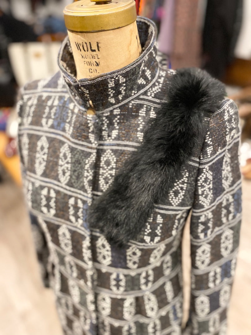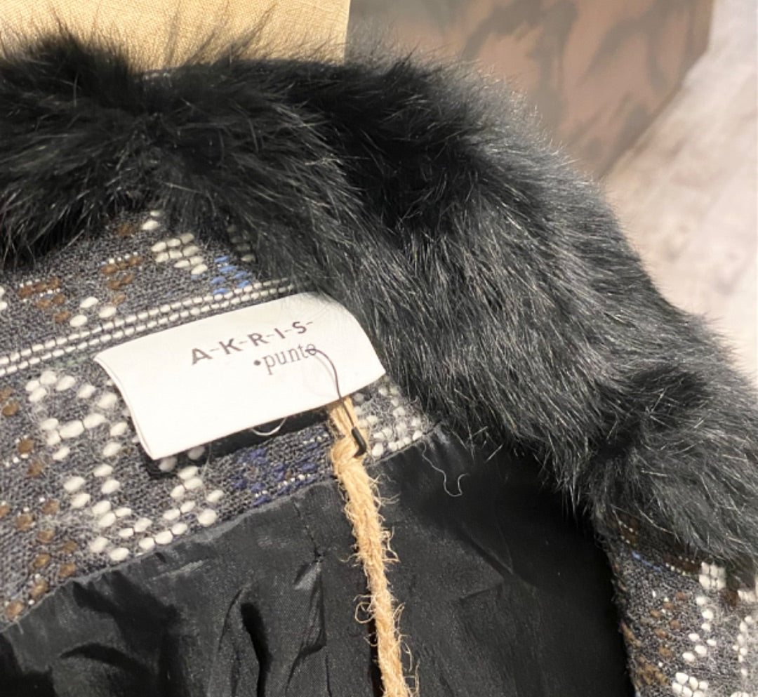 Akris Punto Blue/Black Multicolor Coat with Fur Collar, 6