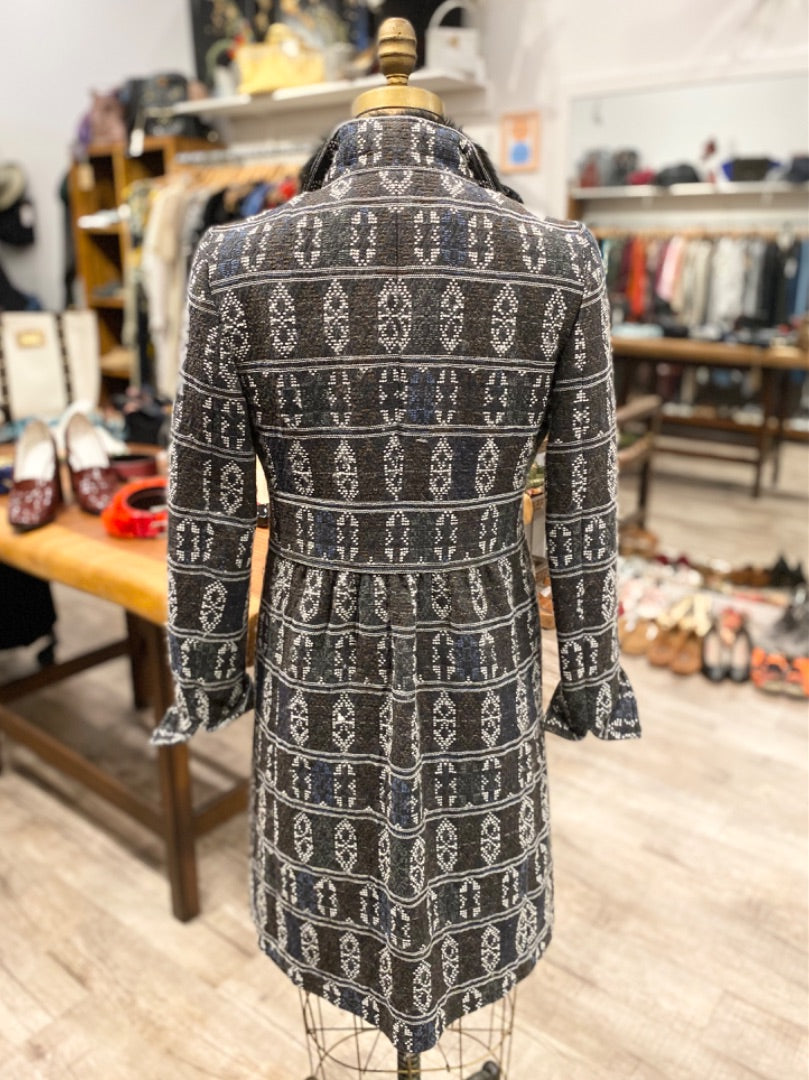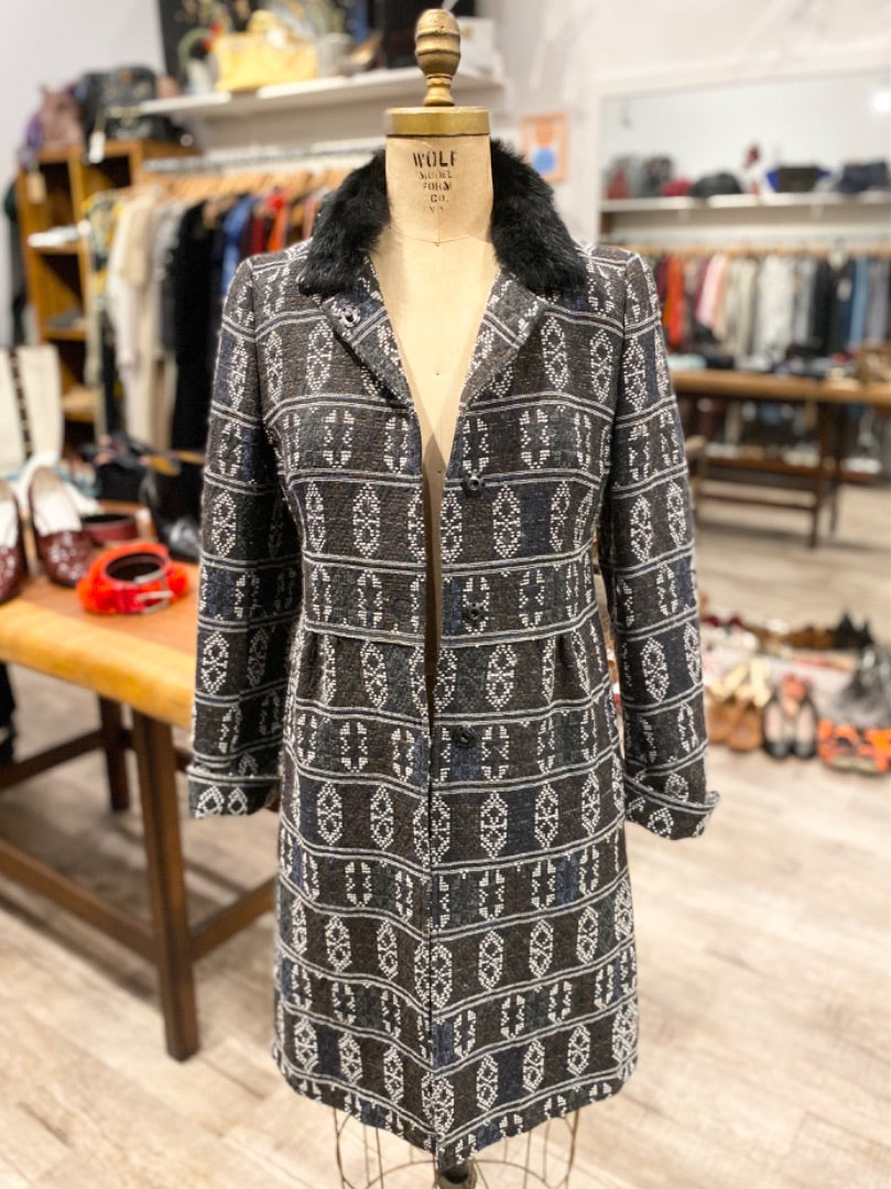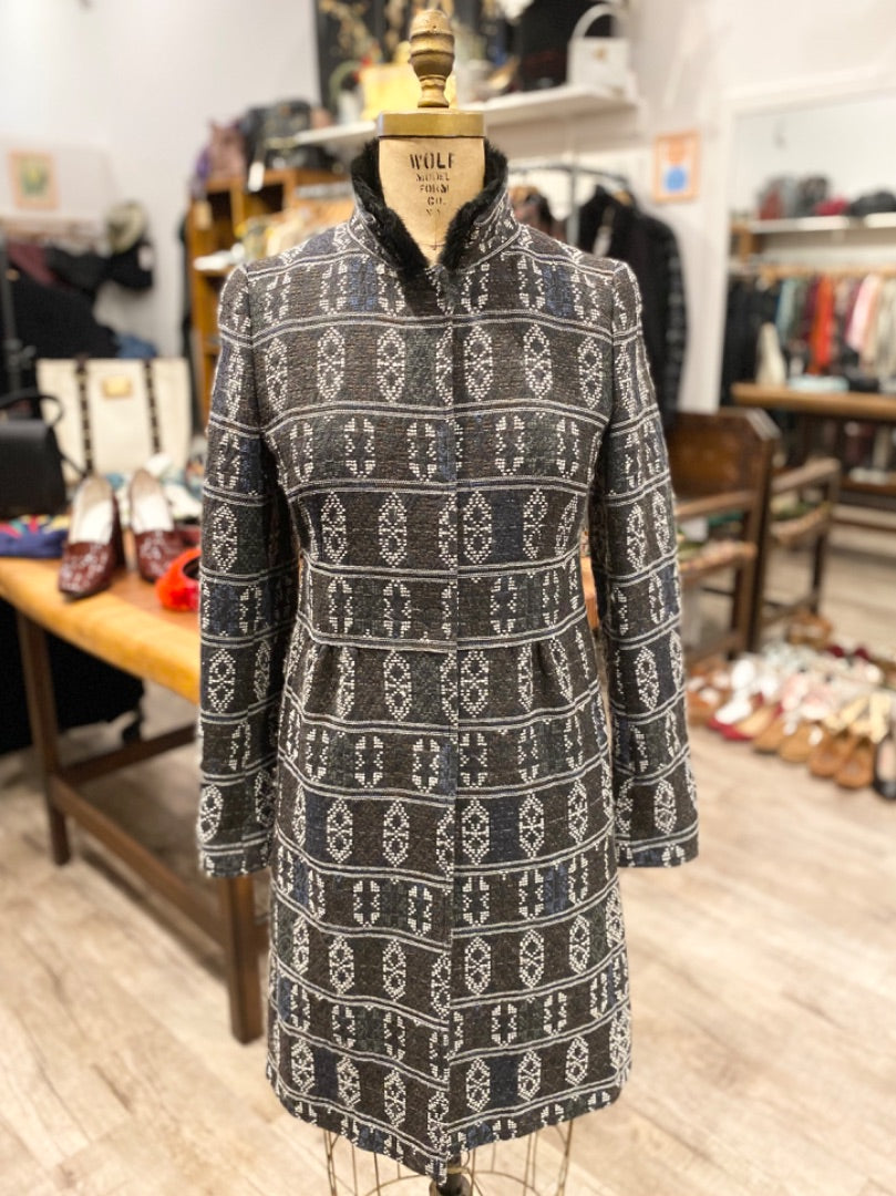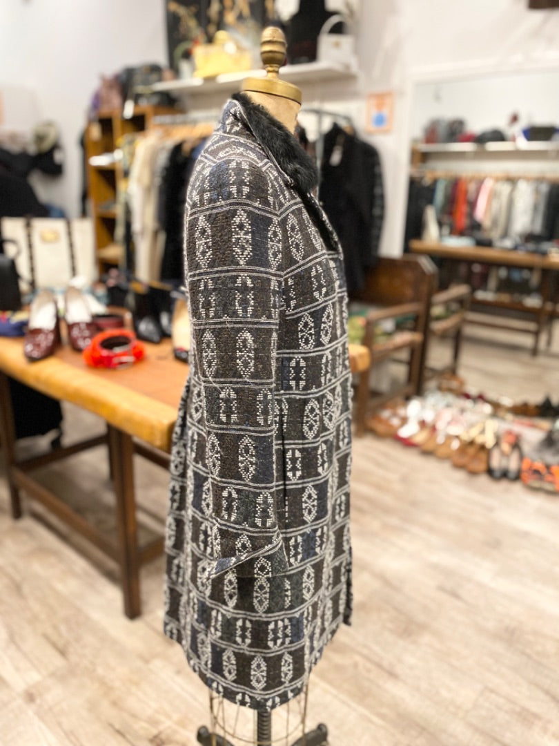 Akris Punto Blue/Black Multicolor Coat with Fur Collar, 6