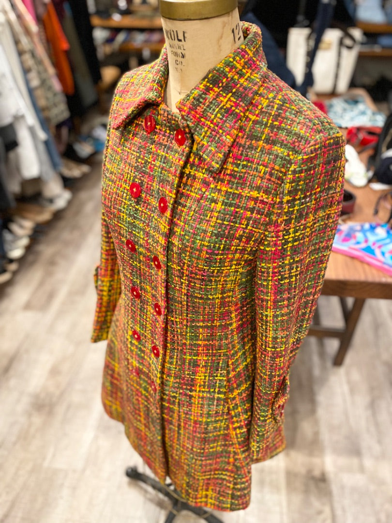 Al's Attire Orange/Multicolor Hand Woven Jacket, Small