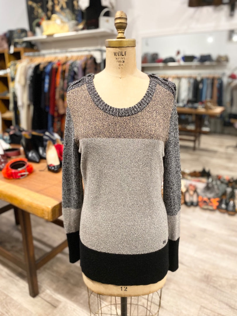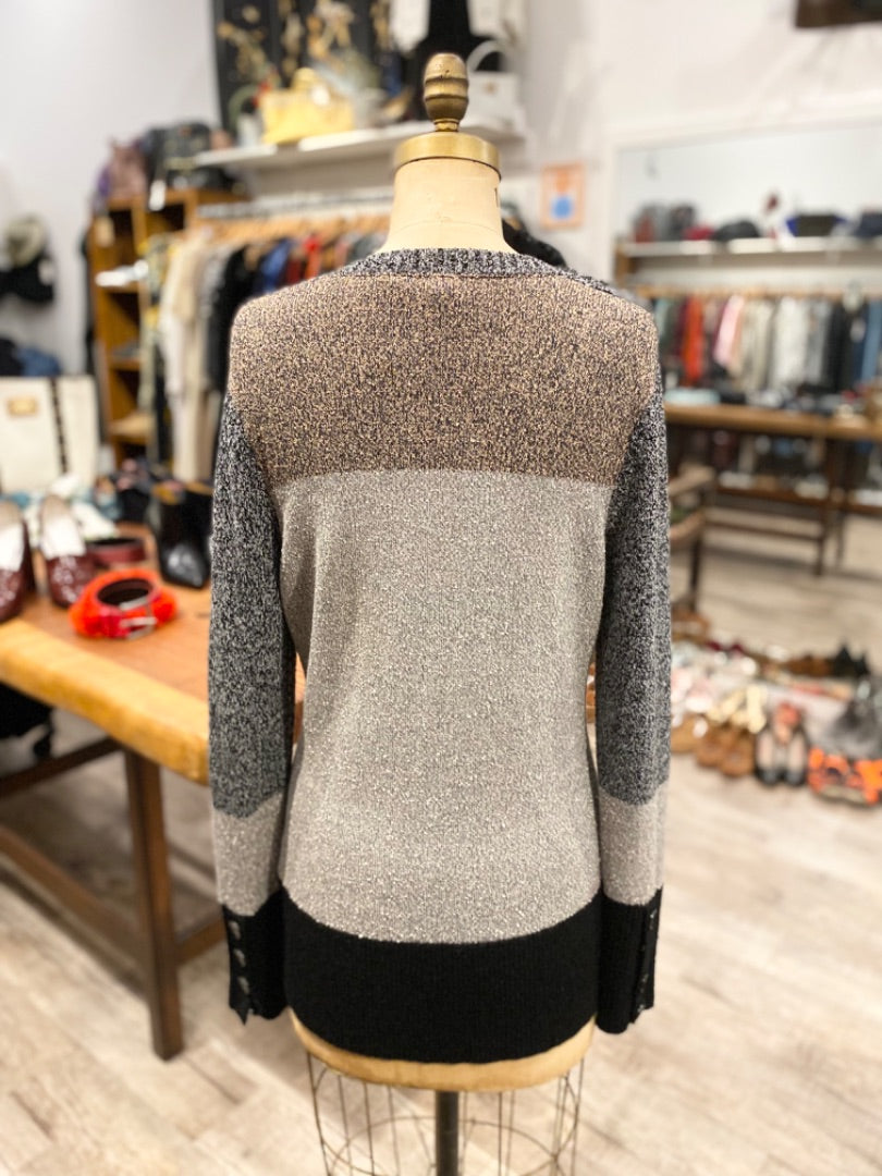 Burberry Brown/Grey Button Sweater, Large