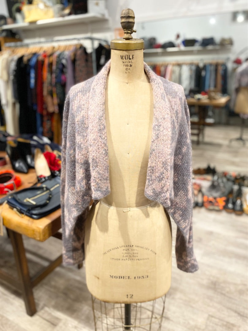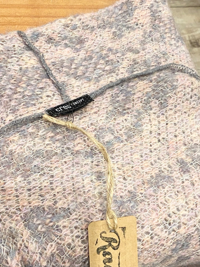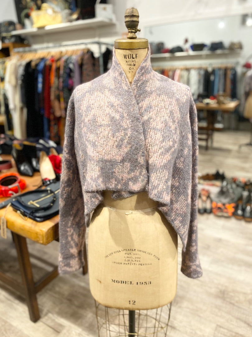 Crea Concept Grey/Peach Print Crop Sweater, Small
