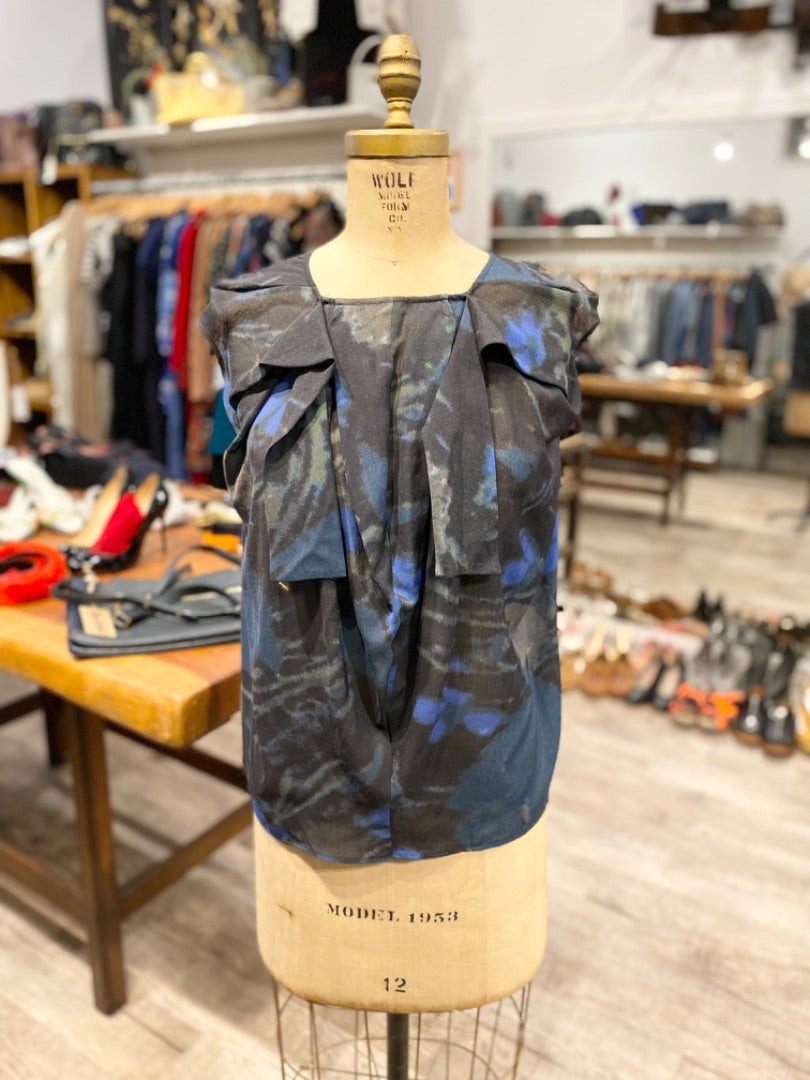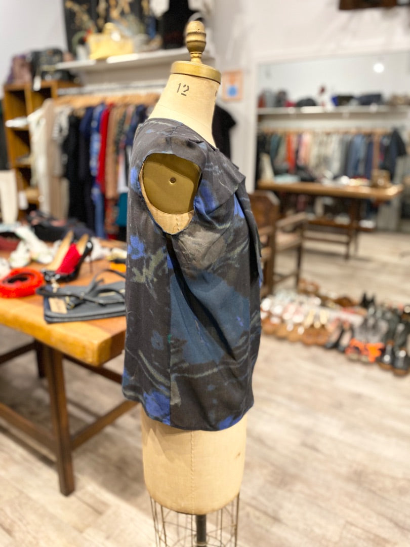 Hache Black/Blue/Green Sheer Linen Top, 38
