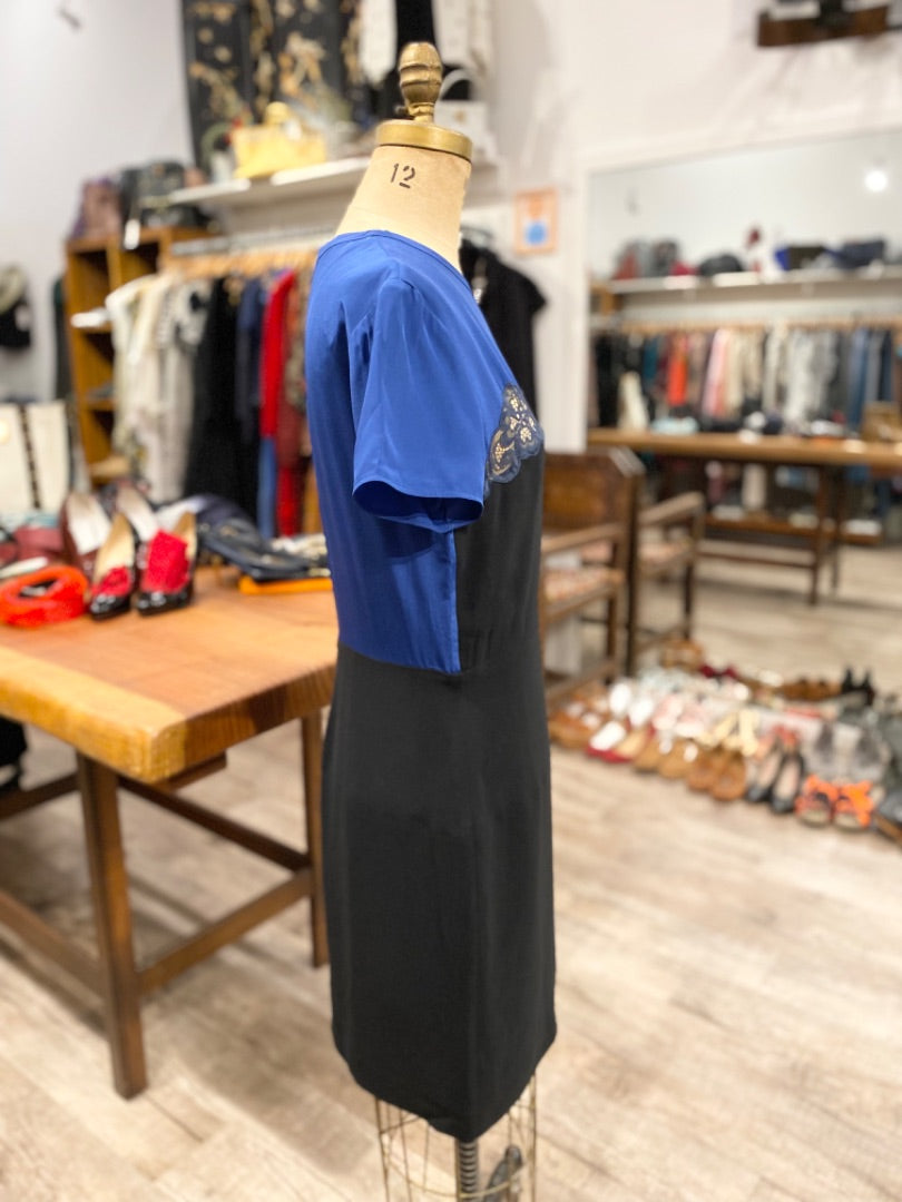 Stella McCartney Black/Blue S/S Silk Midi Dress, 42