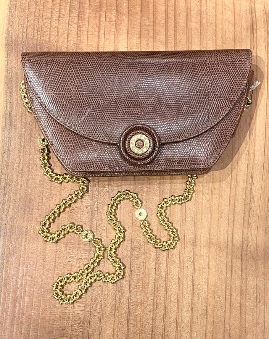 Tiffany and Co. Brown Embossed Leather Gold Chain Purse, OS